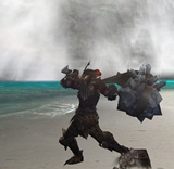 ■ モンスターをめまい状態にすることができる事と、一撃の威力が高いのがハンマーの特徴。 |